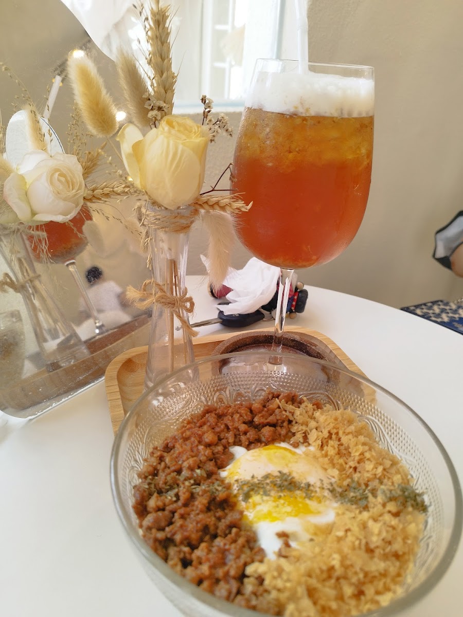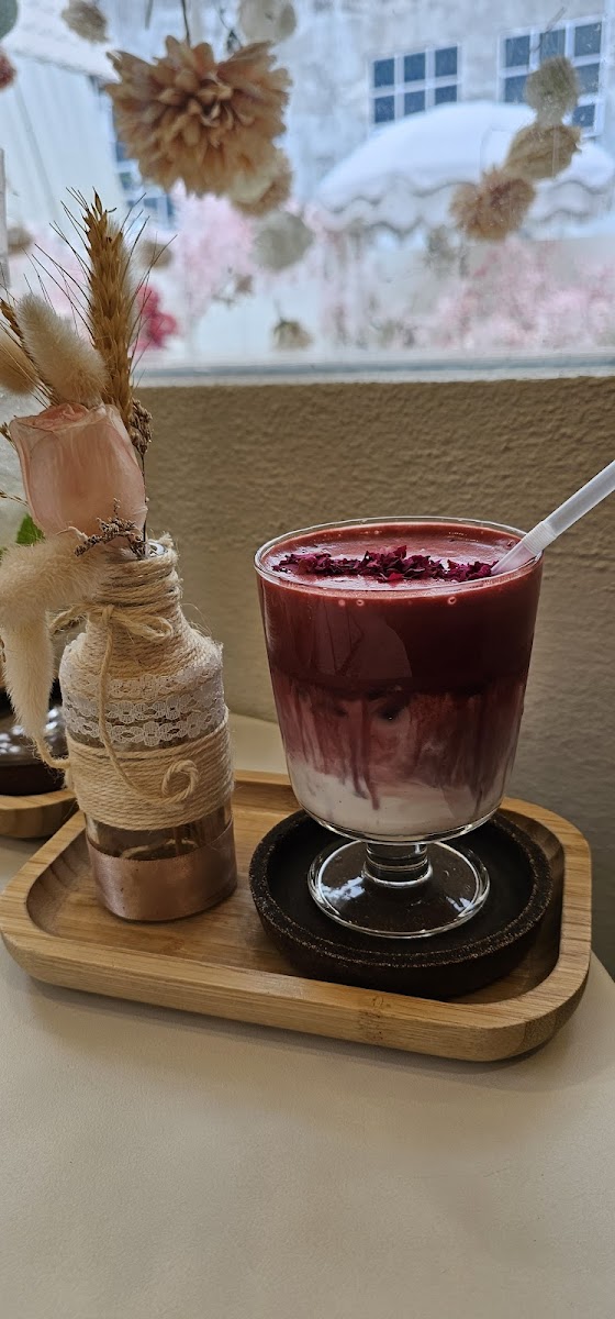 Step inside and be greeted by a space adorned with beautiful floral decorations and cozy furnishings, making it feel like you’ve stepped into an enchanted garden. As one visitor aptly noted, “walking into this café is like walking into an enchanted garden wedding,” a sentiment that speaks volumes about the care and creativity poured into its design. The pastel hues and thoughtful decor elements create a warm and welcoming environment, perfect for a casual meal with friends or a quiet moment of reflection.